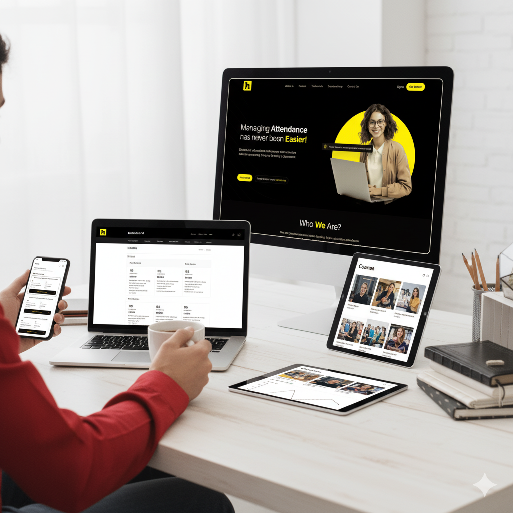 Revolutionizing Classroom Attendance with Geo-Tracking. HereApp is an educational service-based solution built on the MERN framework. It simplifies classroom operations with an intuitive dashboard and smart automation. The geo-tracking feature accurately monitors attendance using GPS to prevent proxies. Instructors can easily record attendance with a single tap. HereApp provides detailed attendance and student engagement analytics.